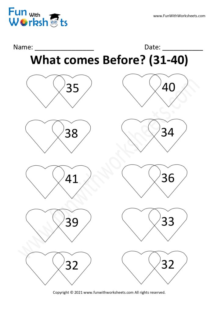 Complete Series of  After Before Worksheets -Free