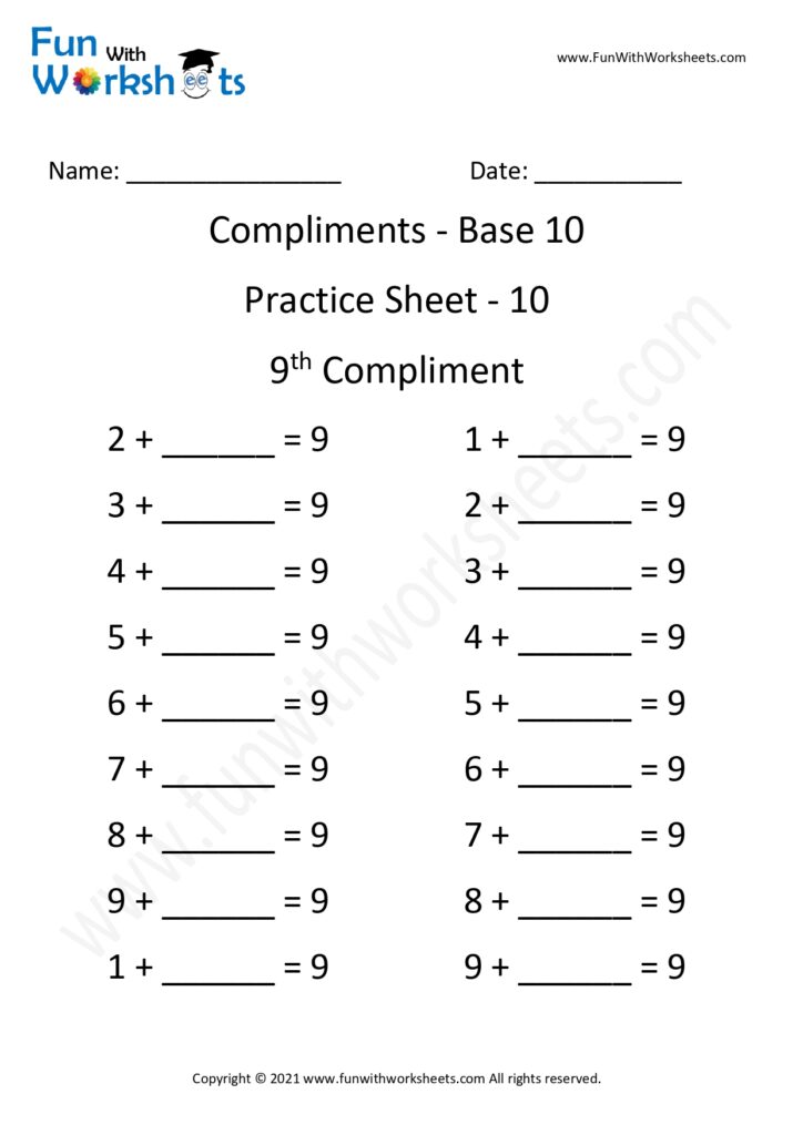 Learn and Practice Compliments 9 & 10 Worksheets