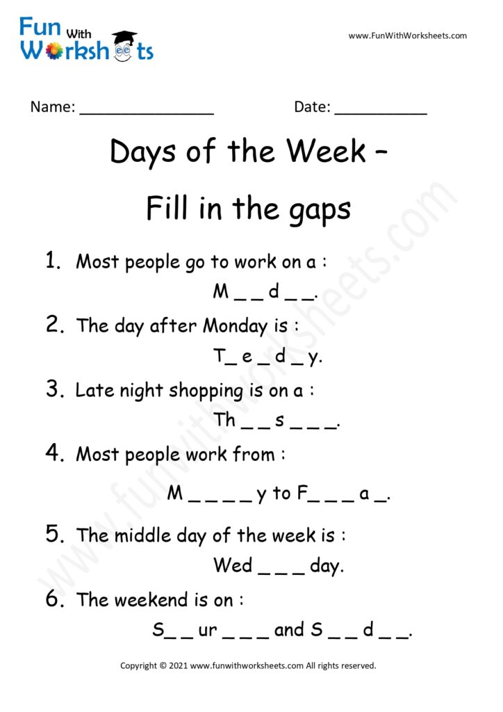 Practice Days of Week (All Worksheets)